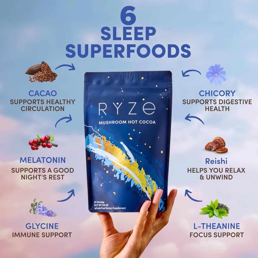 RYZE Mushroom Coffee – A blend of 6 adaptogenic mushrooms, organic Arabica coffee, and MCT oil for clean energy, focus, digestion, and immunity—without jitters or crashes. USDA Organic, California-grown, no additives or sweeteners.